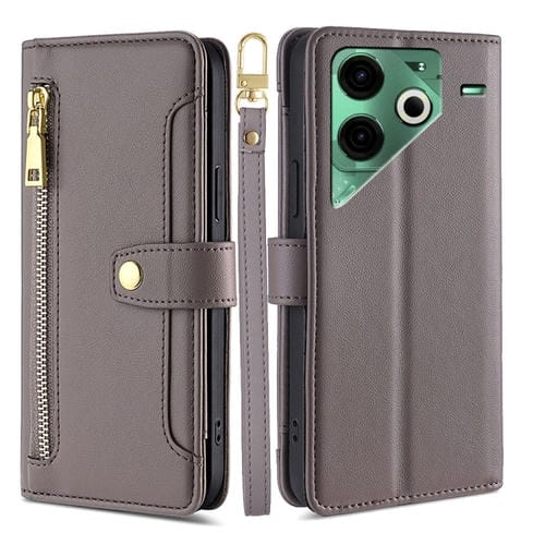 Funda de Cuero con Cremallera y Diseño Cruzado para Tecno Pova 6 Neo 4G (Gris)
