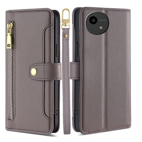 Funda de Cuero con Cremallera para Sharp Aquos Wish4 Lite con Textura de Oveja (Gris)