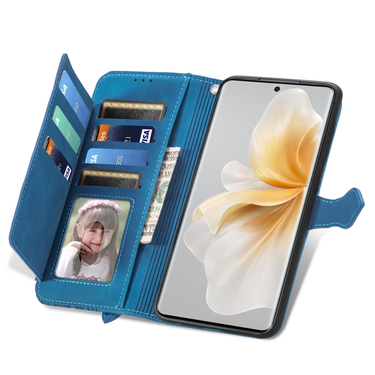 Funda de Cuero Nxtpaper con Cremallera y Diseño Floral para TCL 50 Pro (Azul)