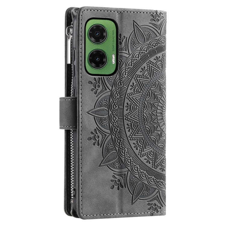 Funda de Cuero con Cremallera y Múltiples Tarjetas para Motorola Moto G35 (Gris)