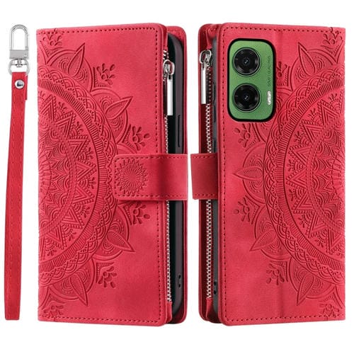Funda de Cuero con Cremallera y Múltiples Tarjetas para Motorola Moto G35 (Rojo)