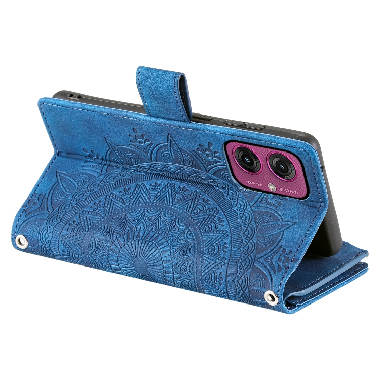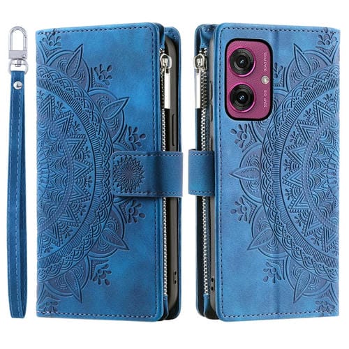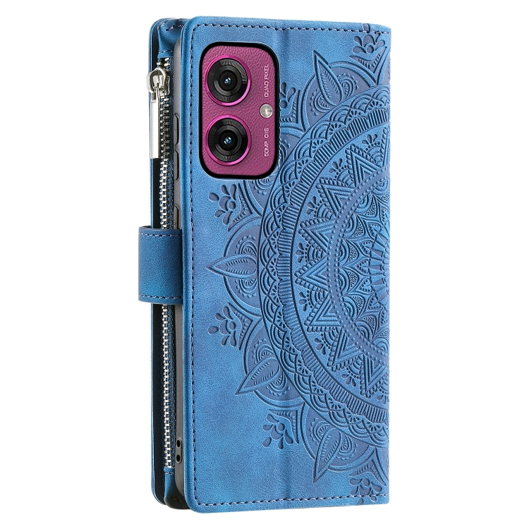 Funda de Cuero con Cremallera y Tarjetero para Motorola Moto G55 (Azul)