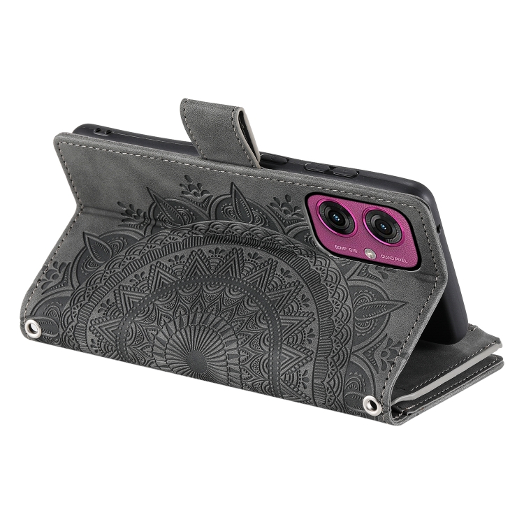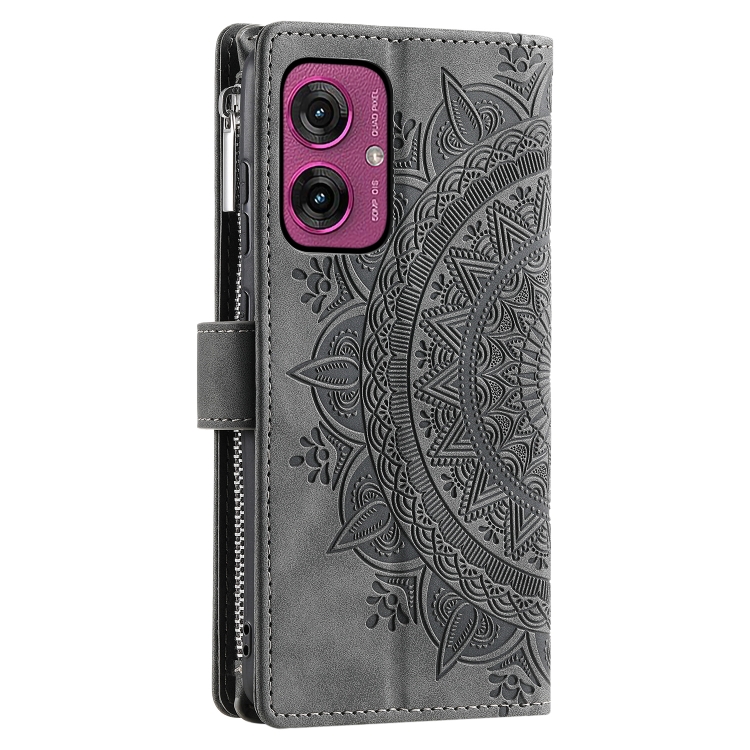Funda de Cuero con Cremallera y Tarjetero para Motorola Moto G55 (Gris)