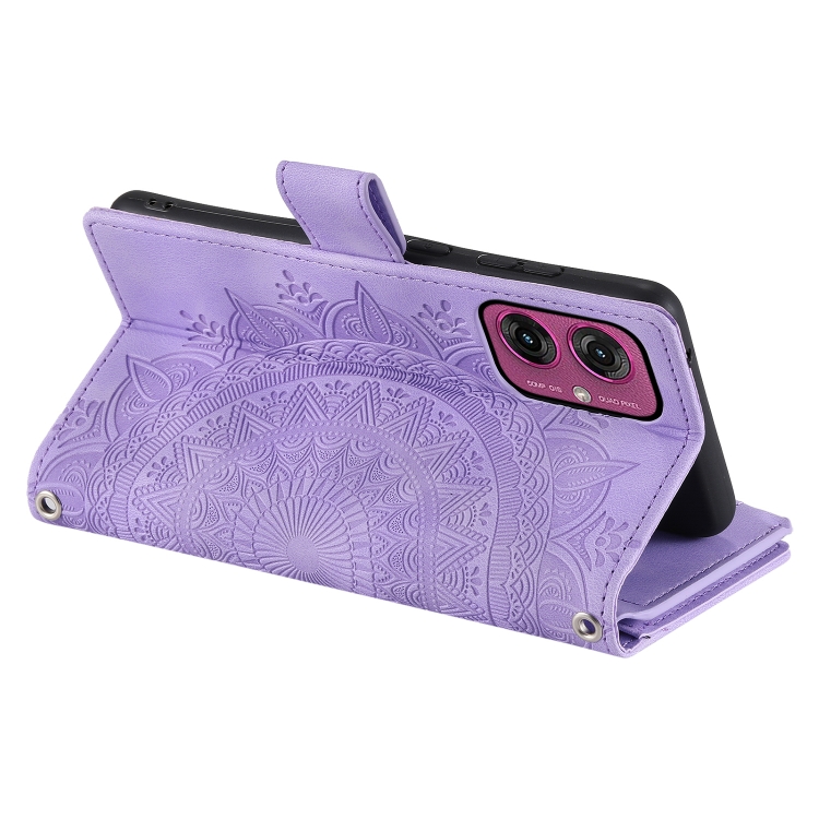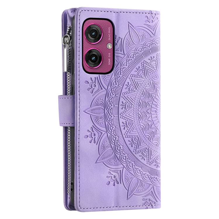 Funda de Cuero con Cremallera y Tarjetas para Motorola Moto G55 (Morado)
