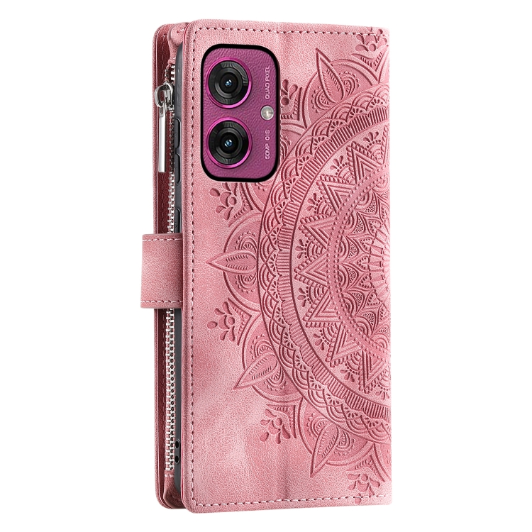 Funda de Cuero con Cremallera y Múltiples Tarjetas para Motorola Moto G55 (Rosa)
