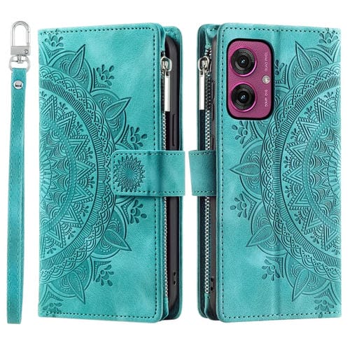 Funda de Cuero con Cremallera y Múltiples Tarjetas para Motorola Moto G55 (Verde)