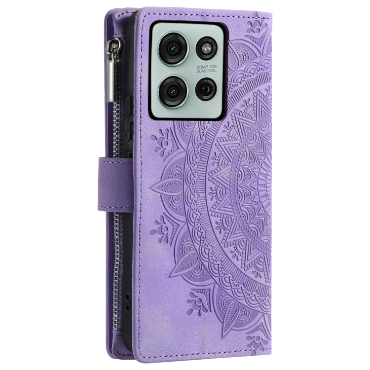 Funda de Cuero con Cremallera y Múltiples Tarjetas para Motorola Moto G75 5G (Morado)