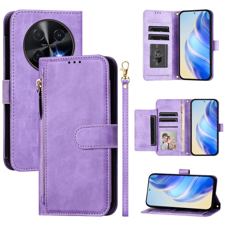 Funda de Cuero con Cremallera y Ranuras para Múltiples Tarjetas Huawei Nova 12I 4G (Morado)