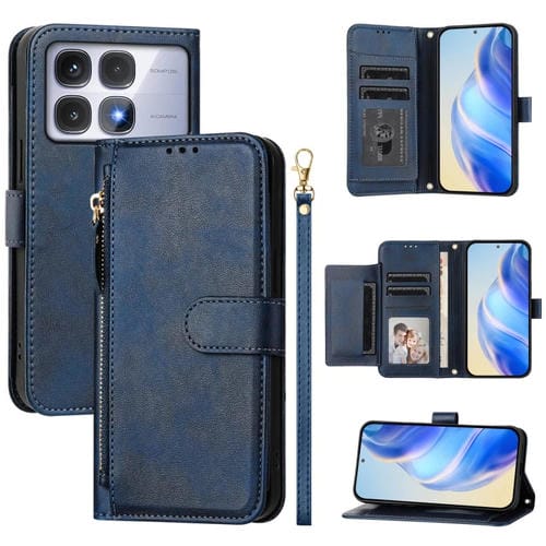 Funda de Cuero con Cremallera y Ranuras para Múltiples Tarjetas para Redmi K70 Ultra 5G (Azul)