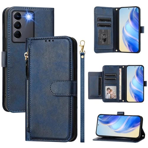 Funda de Cuero con Cremallera y Ranuras para Múltiples Tarjetas para Vivo V27 5G/V27 Pro 5G (Azul)