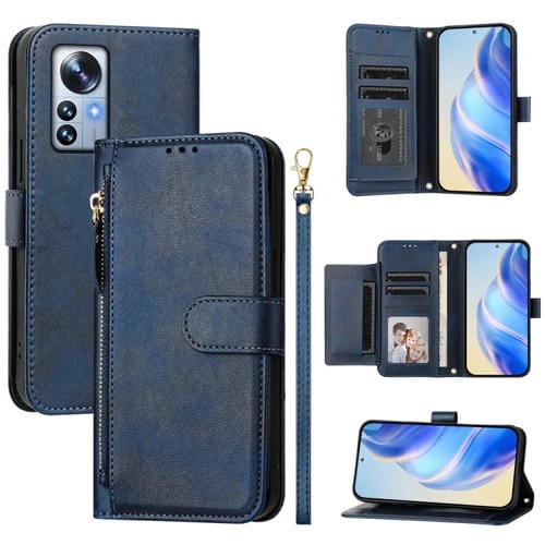 Funda de Cuero con Cremallera y Ranuras para Múltiples Tarjetas para Xiaomi 12 Pro/12S Pro (Azul)
