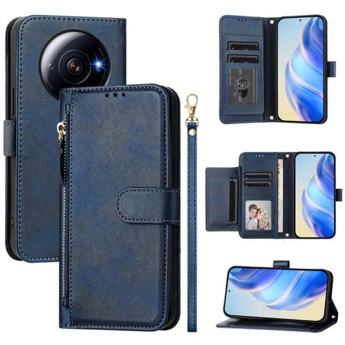 Funda de Cuero con Cremallera y Ranuras para Múltiples Tarjetas para Xiaomi 12S Ultra (Azul)