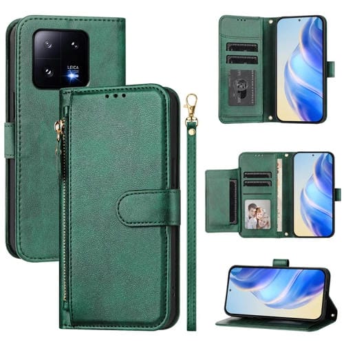 Funda de Cuero con Cremallera y Ranuras para Múltiples Tarjetas para Xiaomi 13 Pro (Verde)