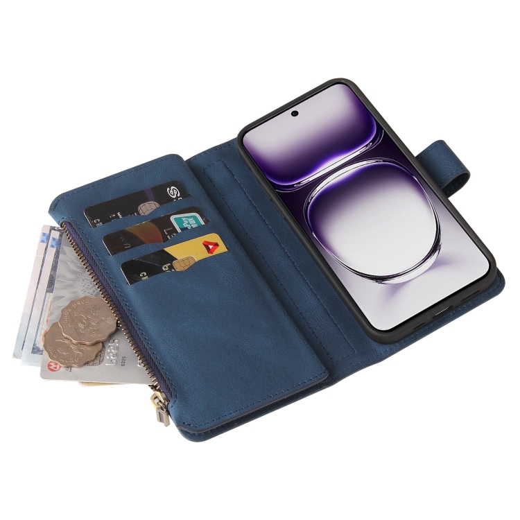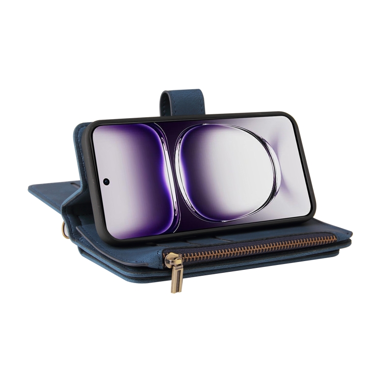 Funda de Cuero con Cremallera y Ranuras para Tarjetas Múltiples para Oppo Reno12 5G Global Skin Feel (Azul)