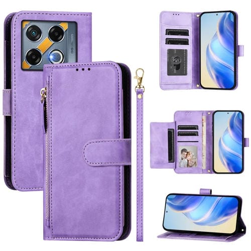 Funda de Cuero con Cremallera y Ranuras para Tarjetas para Infinix GT 20 Pro 5G (Morado)