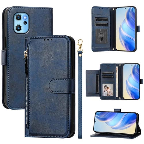 Funda de Cuero con Cremallera y Ranuras para Tarjetas para Umidigi Power 7 Max (Azul)
