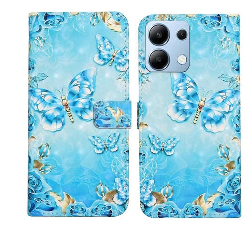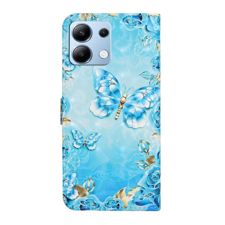 Funda de Cuero con Dibujo 3D En Relieve de Aceite para Redmi Note 13 4G (Mariposas Azules)