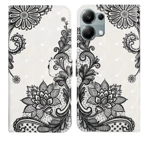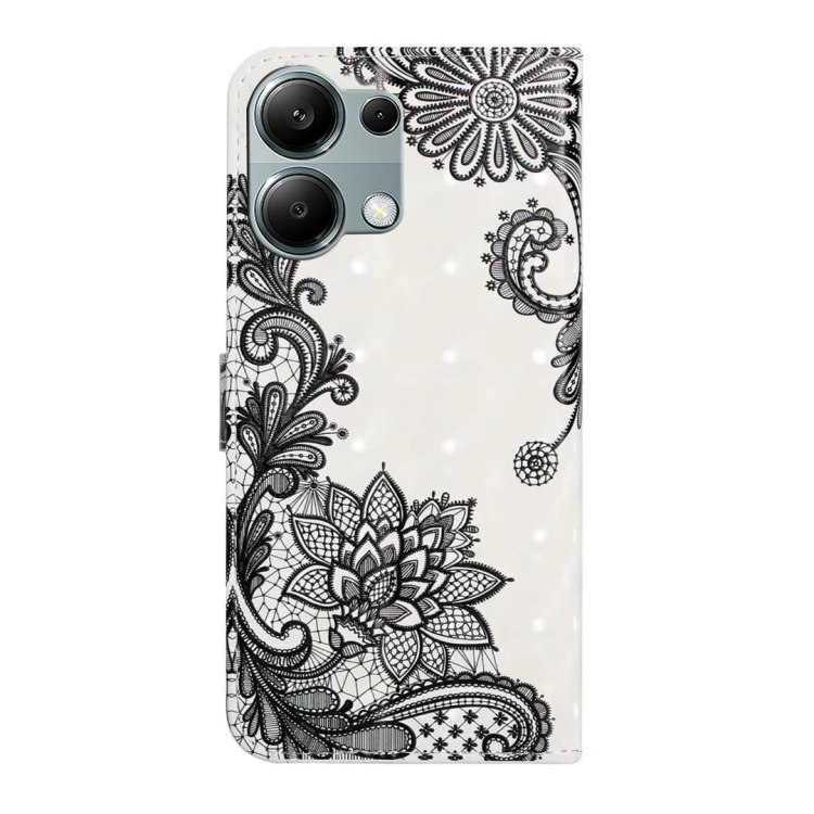 Funda de Cuero con Dibujo 3D En Relieve de Aceite para Redmi Note 13 Pro 4G (Flor de Encaje)
