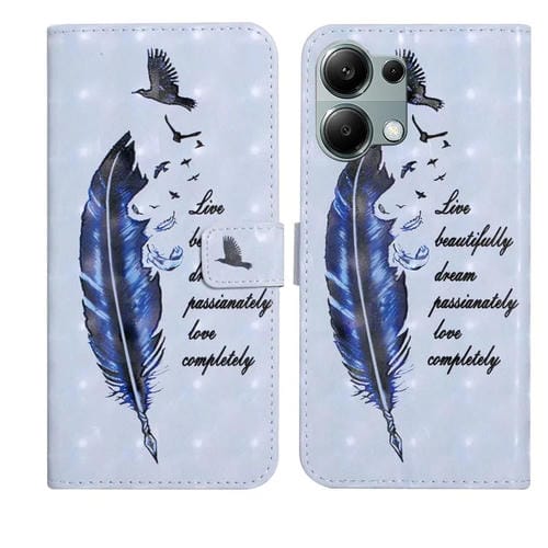 Funda de Cuero con Dibujo 3D En Relieve de Aceite para Redmi Note 13 Pro 4G (Pluma Azul)
