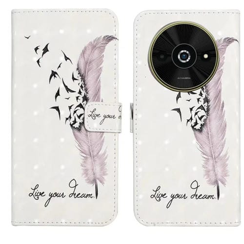Funda de Cuero con Dibujo 3D En Relieve de Aceite para Xiaomi Poco C61 (Pluma)