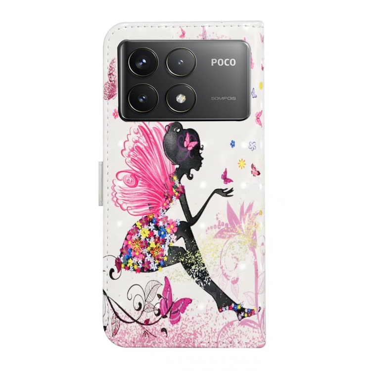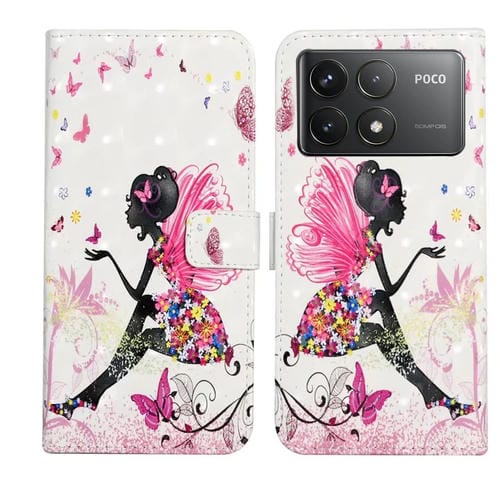 Funda de Cuero con Dibujo 3D En Relieve de Aceite para Xiaomi Poco F6 Pro (Hada de Las Flores)