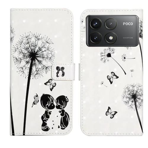 Funda de Cuero con Dibujo 3D En Relieve de Aceite para Xiaomi Poco F6 Pro (Pareja de Dientes de León)