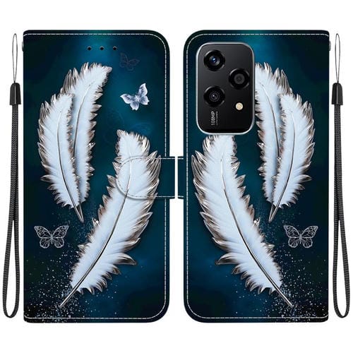 Funda de Cuero Honor 200 Lite con Dibujo a Color y Textura Cristal Global (Plumas de Mariposa Blancas)