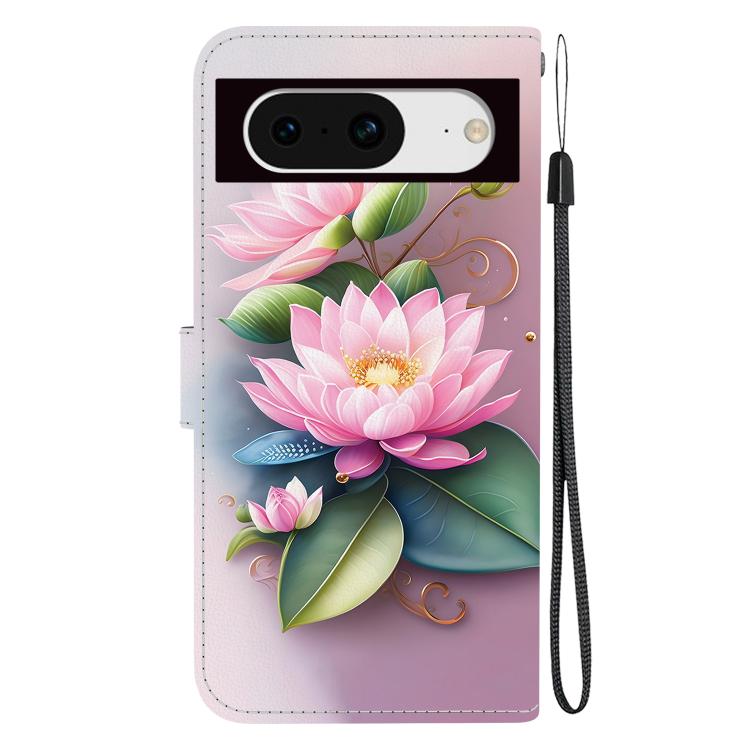 Funda de Cuero para Google Pixel 8 con Dibujo de Colores y Textura de Cristal (Lotus)