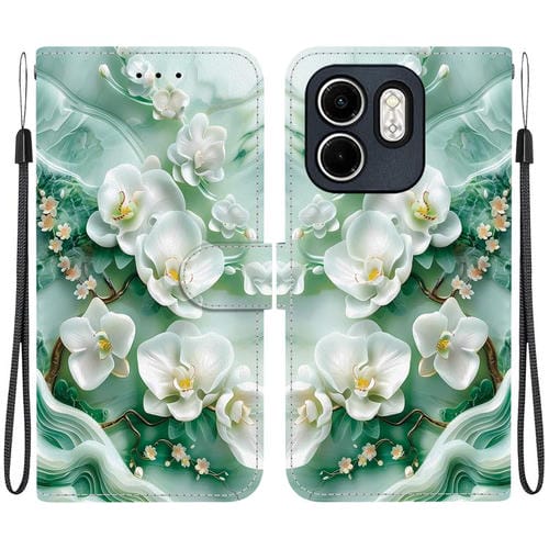 Funda de Cuero con Dibujo y Textura de Cristal para Infinix Hot 50I Smart 9 (Flores de Jade)