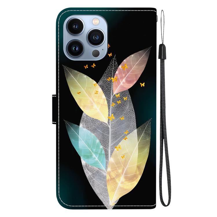 Funda de Cuero para iPhone 15 Pro con Dibujo de Colores y Textura de Cristal (Hojas de Colores)