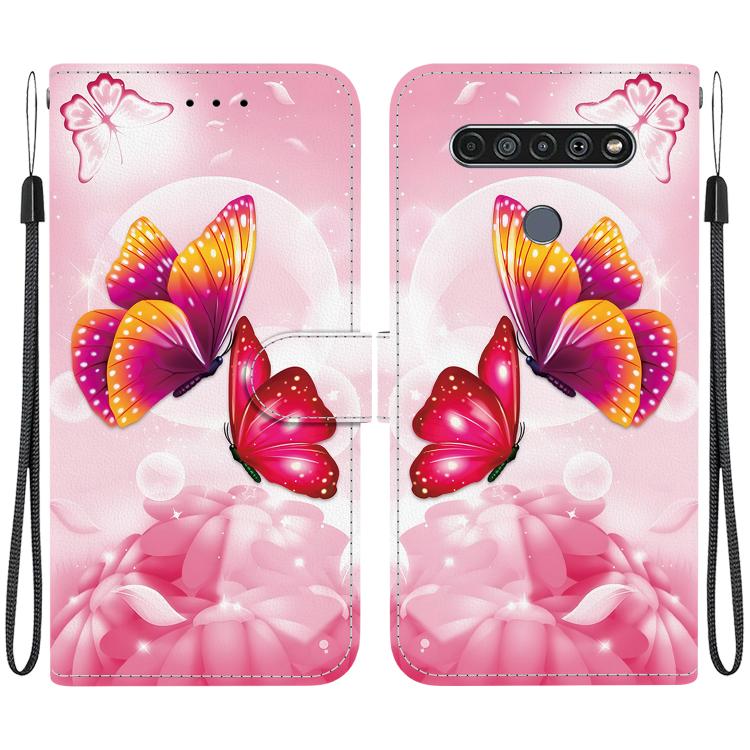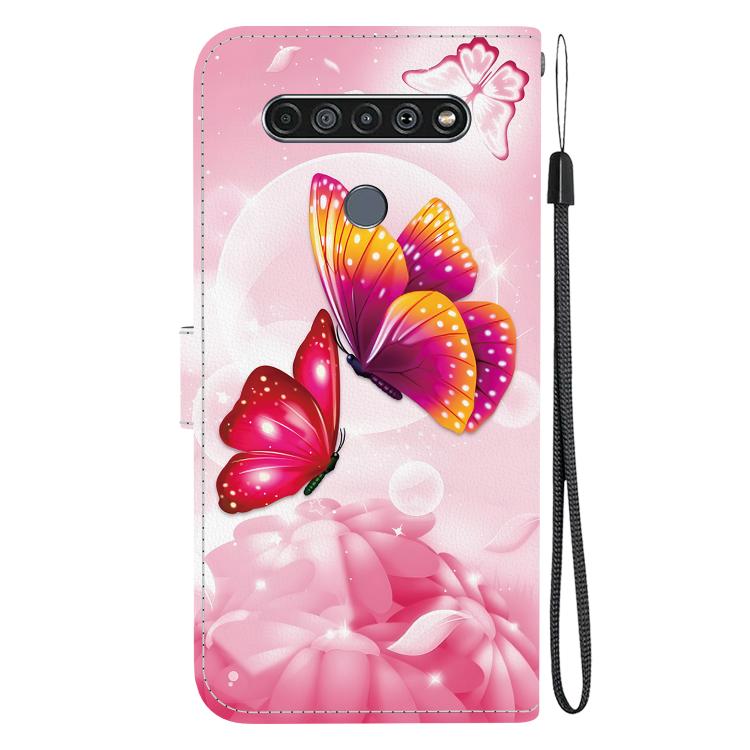 Funda de Cuero con Dibujo y Textura de Cristal para LG K61 (Mariposas Rosas)