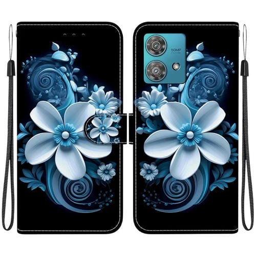 Funda de Cuero Motorola Edge 40 Neo con Dibujo de Colores y Textura de Cristal (Orquídea Negra)