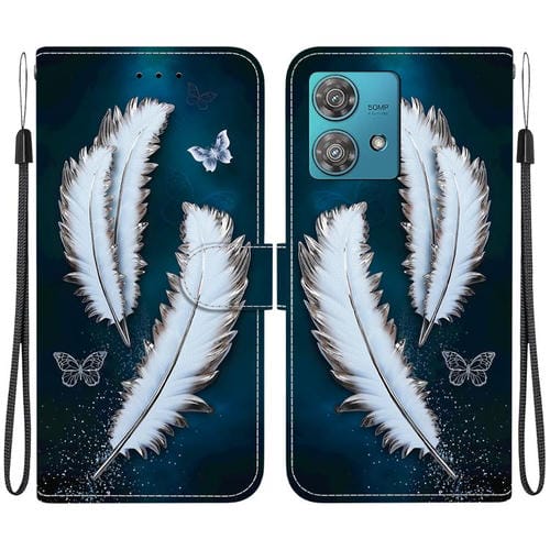 Funda de Cuero con Dibujo y Textura de Cristal para Motorola Edge 40 Neo (Plumas de Mariposa Blancas)