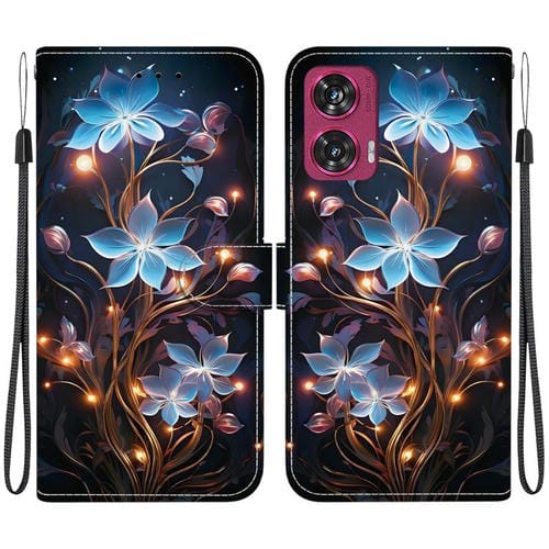 Funda de Cuero para Motorola Edge 50 Fusion con Dibujo de Colores y Textura de Cristal (Flor de Linterna Pequeña)