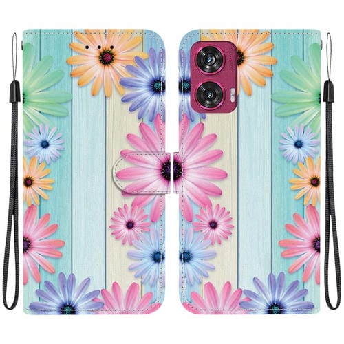 Funda de Cuero para Motorola Edge 50 Fusion con Dibujo de Colores y Textura de Cristal (Girasoles)