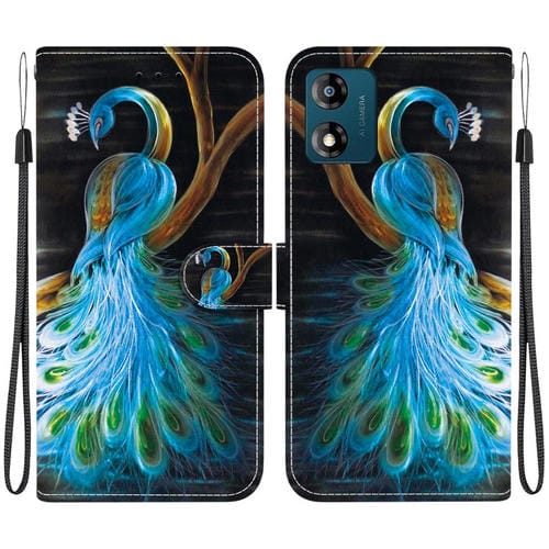 Funda de Cuero para Motorola Moto E13 con Dibujo de Colores y Textura de Cristal (Pavo Real)