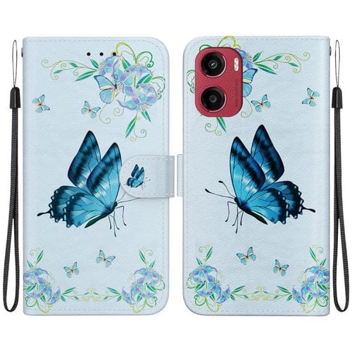 Funda de Cuero con Dibujo y Textura de Cristal para Motorola Moto G05/E15 (Pensamientos Azules)
