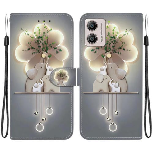 Funda de Cuero para Motorola Moto G13/G23/G53 con Dibujo de Colores y Textura de Cristal (Elefantes)