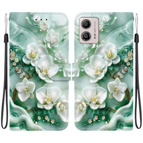 Funda de Cuero con Dibujo de Colores y Textura de Cristal para Motorola Moto G13/G23/G53 (Flores de Jade)