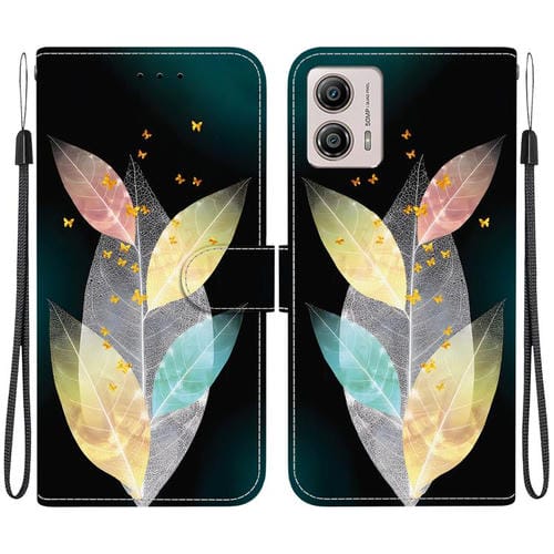 Funda de Cuero Motorola Moto G13/G23/G53 con Dibujo y Textura de Cristal (Hojas de Colores)