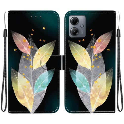 Funda de Cuero con Dibujo y Textura de Cristal para Motorola Moto G14 (Hojas de Colores)
