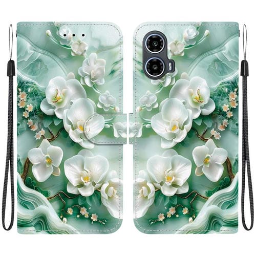 Funda de Cuero para Motorola Moto G34 5G con Dibujo de Colores y Textura de Cristal (Flores de Jade)