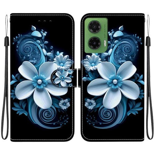 Funda de Cuero para Motorola Moto G35 con Dibujo de Colores y Textura de Cristal (Orquídea Negra)