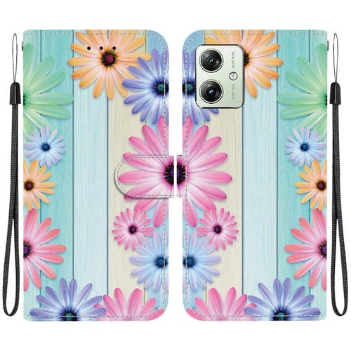 Funda de Cuero Motorola Moto G54 con Dibujo de Colores y Textura de Cristal (Girasoles)
