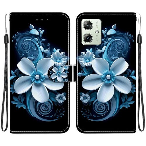 Funda de Cuero para Motorola Moto G54 con Dibujo de Colores y Textura de Cristal (Orquídea Negra)