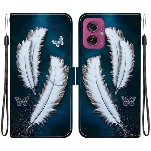Funda de Cuero para Motorola Moto G55 con Dibujo de Colores y Textura de Cristal (Plumas de Mariposa Blancas)