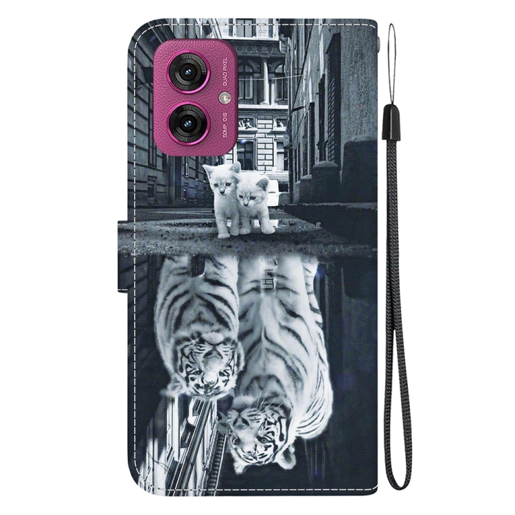 Funda de Cuero con Dibujo y Textura de Cristal para Motorola Moto G55 (Reflejo de Tigre y Gato)