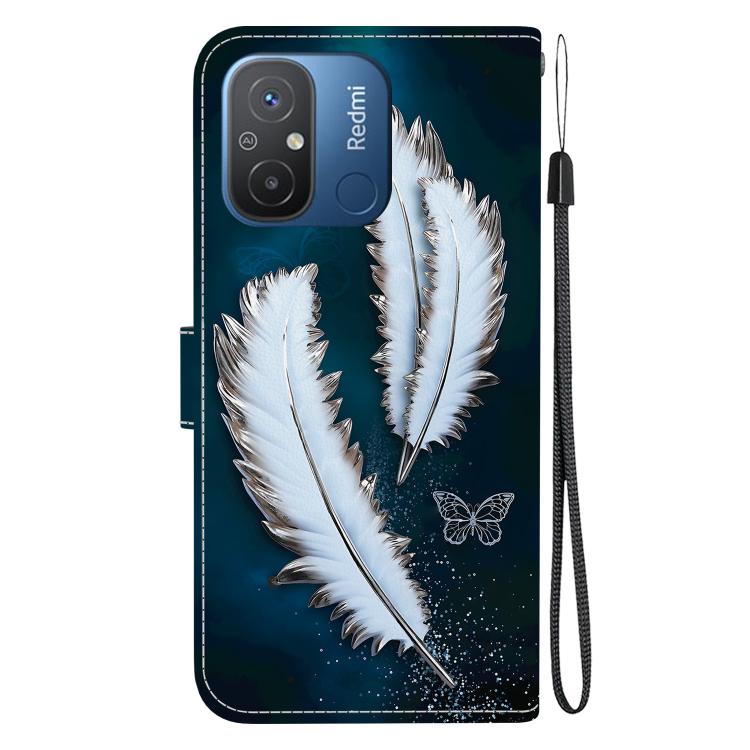 Funda de Cuero con Dibujo de Colores y Textura de Cristal para Redmi 12C/11A (Plumas de Mariposa Blancas)