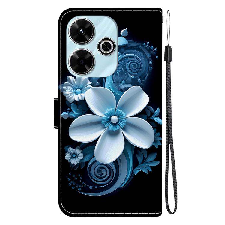 Funda de Cuero con Dibujo de Colores y Textura de Cristal para Redmi 13 4G/Poco M6 (Orquídea Negra)