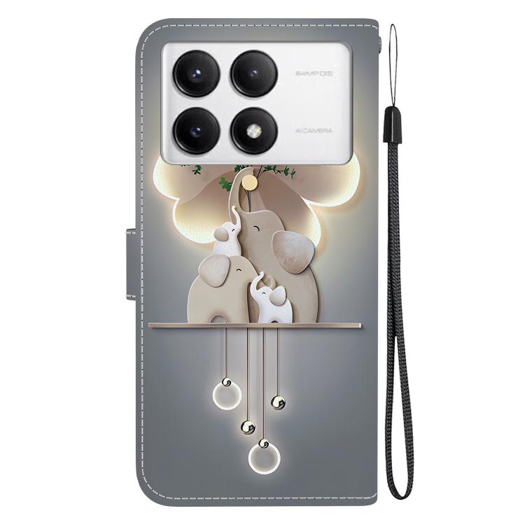Funda de Cuero con Dibujo de Colores y Textura de Cristal para Redmi K70/K70 Pro (Elefantes)
